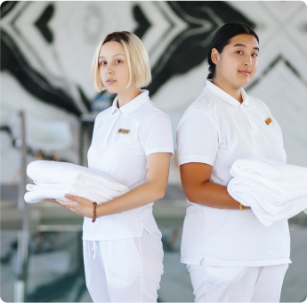 Бойцы работают официантами, барменами, кухонными работниками, спасателями, горничными, швейцарами, хостес, озеленителями, роуди, хелперами и по другим профессиям.
